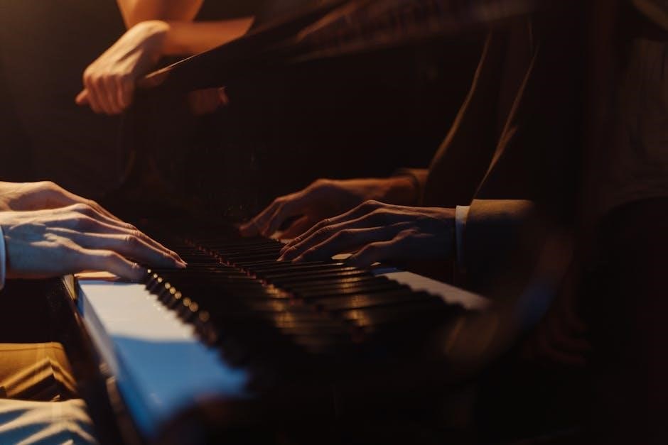 Jazz piano chord progressions unlock improvisation and harmonic richness, often documented in PDF resources for study. Understanding these structures is vital for piano players.