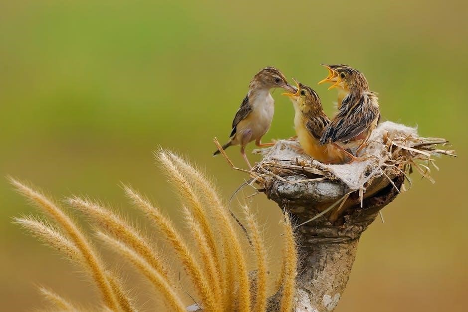 Identification keys help users narrow down possibilities based on nest shape, size, materials used, and habitat․ These resources often highlight unique nesting behaviors, like the cobweb use by Long-tailed Tits to create expandable nests․ Utilizing these guides enhances observational skills and fosters a deeper appreciation for the diversity of avian nesting strategies․