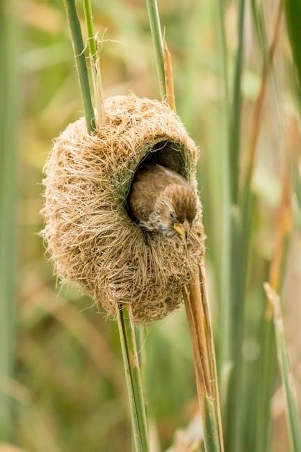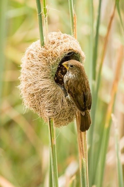 PDF guides also highlight variations in weaving styles among different oriole species, demonstrating the evolutionary refinement of this complex behavior․ Studying these nests through PDF documentation provides valuable insights into avian dexterity and problem-solving abilities․
