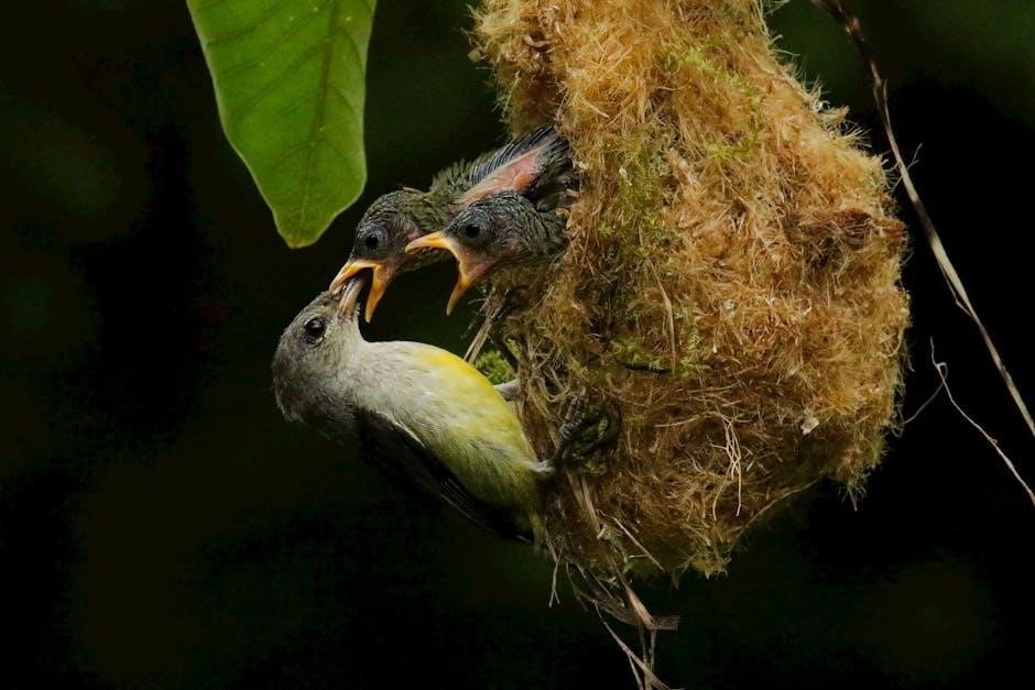 These PDF resources emphasize that this technique is vital for the species’ reproductive success, providing a secure and adaptable nesting environment․ Studying these nests via PDFs reveals a fascinating example of avian innovation and resourcefulness․